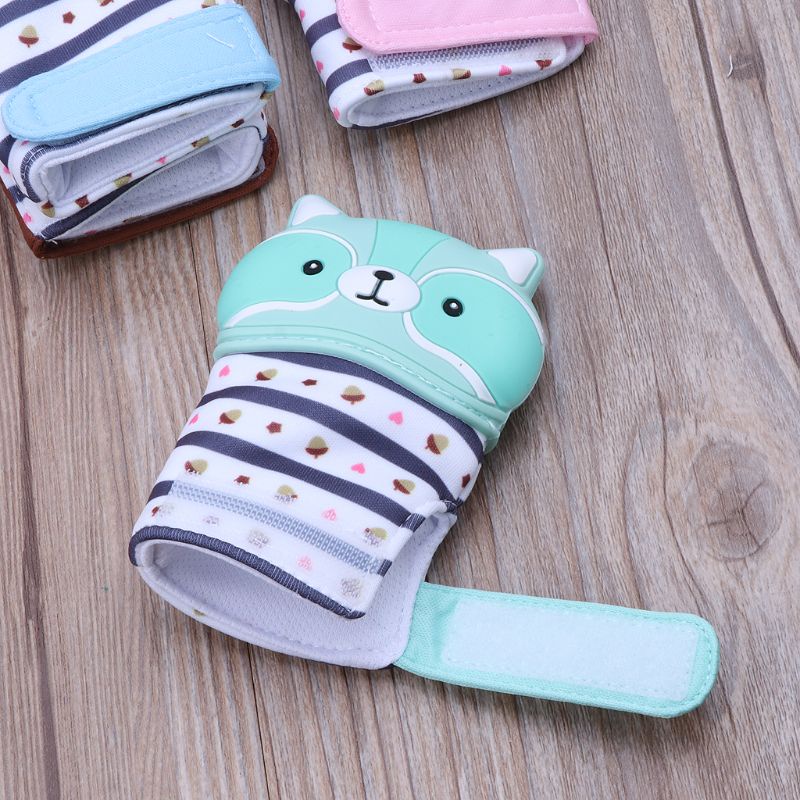 Gấu trúc cho bé Găng tay silicon mọc răng Găng tay Kẹo gói âm thanh Teethers f Thương hiệu mới và chất lượng cao