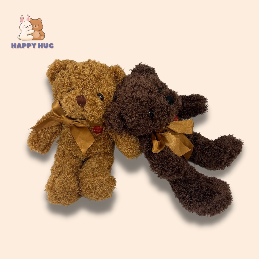 Gấu bông xù size nhỏ 25 cm xinh xắn, dễ thương, mềm mịn, đính nơ lụa, thú nhồi bông cao cấp - Happy Hug