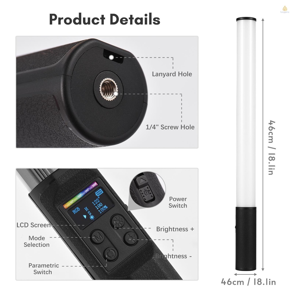【Đèn Ống RGB với màn hình LCD】 Áp dụng các hạt đèn LED 150 chiếc chất lượng cao, với màn hình LCD, độ sáng cao và độ hoàn màu cao hơn 95+, tái tạo màu sắc thực sự, rất thích hợp cho vlog, quay video, chân dung hoặc chụp ảnh sản phẩm, Phát trực tiếp, v.v.