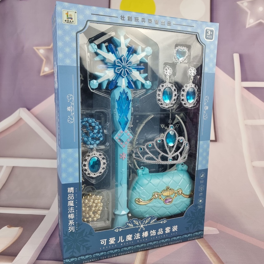Giới thiệu Gậy thần công chúa tuyết full bộ ( túi xách , vương miện , vòng cổ …)có đèn có âm thanh
