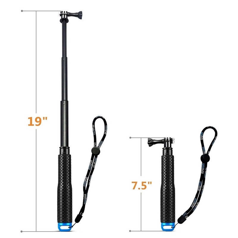 1. Thân gậy bằng ống nhôm. 2. Có dây đeo để thuận tiện mang theo và sử dụng. 3. Thích hợp cho mang theo đi du lịch, nhật ký video, viết blog video, đi bộ đường dài/ cắm trại, đám cưới, tiệc tùng, bãi biển, buổi hòa nhạc, chụp ảnh trên không, các sự kiện thể thao. 4. Rất tiện lợi và dễ dàng để tự chụp chân dung và quay video. 5. Mở rộng từ 19 đến 49cm, (chiều dài tối đa xấp xỉ 19 inch) 6. Tương thích cho GoPro Hero 5/ 4/ 3+/ 3/ 2/ 1 và cho Xiaomi Xiaoyi, cho camera thể thao SJCAM.