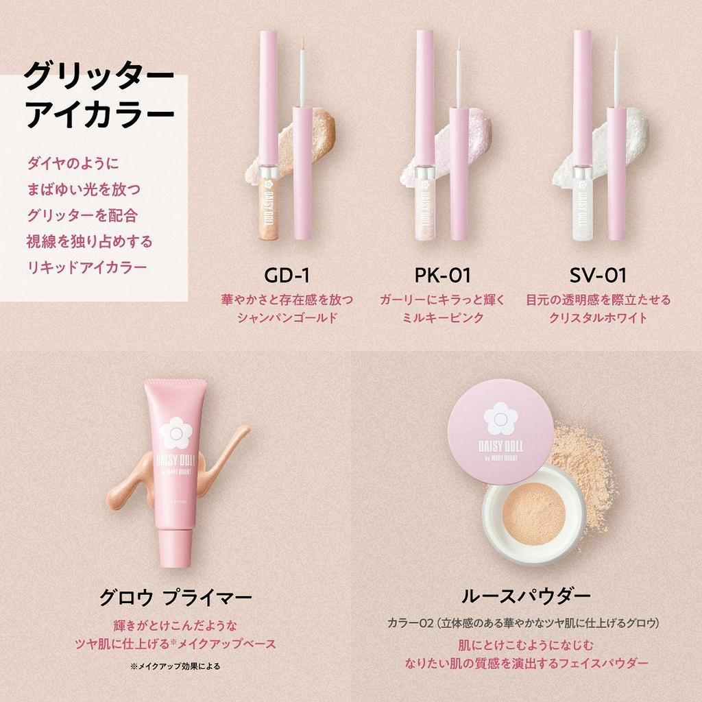☘ Gel Nhũ Mắt Daisy Doll giúp đôi mắt bạn thêm long lanh tỏa sáng, hiệu ứng bắt sáng tốt, độ lên màu chuẩn và bền màu giúp lớp gel nhũ được giữ lâu hơn trong suốt thời gian dài. ☘ Chất nhũ lấp lánh đầy thu hút sự kết hợp hoàn hảo giữa tổ hợp hạt ngọc trai SIÊU MỊN ( 5 thành phần ngọc trai) và hạt nhũ lấp lánh RẠNG RỠ. ☘ Chất gel mang lại sự thoải mái trên mắt, trong suốt và độ lên màu chuẩn cùng với độ ẩm vượt trội. ☘ Nhanh chóng set lại trên mắt và không gây hiện tượng bay nhũ. ☘ Đầu cọ siêu mảnh và mịn giúp dễ dàng lấy được lượng sản phẩm cần thiết. Lý tưởng dành cho những người mới tập tành makeup ☘ Đặc biệt phù hợp với những cô gái yêu thích phong cách makeup Nhật, Hàn, Trung. Giúp bạn tỏa sáng lấp lánh trong những bữa tiệc đêm. ☘ Nhũ mắt Daisy Doll đến từ Nhật Bản được chọn lọc thành phần thiên nhiên, đặc biệt NGỌC TRAI Nhật cao cấp, láng mịn, tạo nét SANG CHẢNH, thu hút khó cưỡng. ☘ Đa công dụng, bạn hoàn toàn có thể dùng để make up cho các vùng da khác trên khuôn mặt