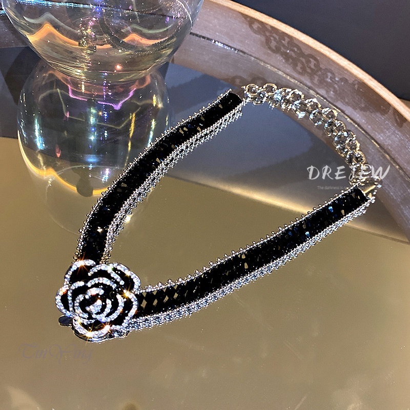 Giới thiệu GETNOIVAS Vòng cổ Ngắn Màu Đen Mặt Hoa Hồng Đính Pha Lê Phong Cách Hàn Quốc Cho Nữ