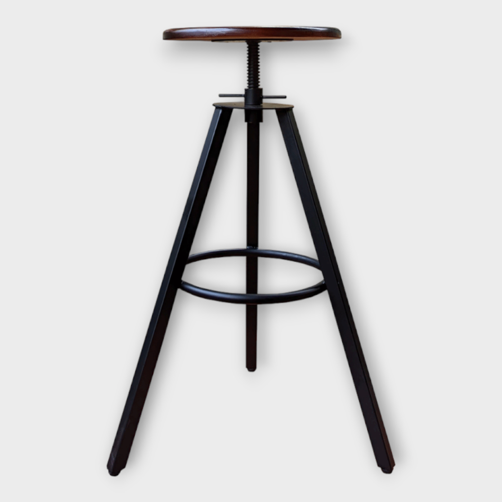 Ghế đôn quầy bar mâm xoay nâng hạ Compass được làm từ chất liệu chính là sắt dày sơn tĩnh điện, mặt gỗ tự nhiên. Mâm ghế gắn ty ren có thể nâng hạ khi xoay bằng tay quay gắn sẵn rất tiện lợi. Chiều cao ghế thấp nhất là 60cm, cao nhất là 75cm. Đường kính mâm ghế 32x32 cm, chân ghế 48x48 cm tạo thế vững chãi. Vòng tròn để chân không chỉ mang tính thẩm mỹ, mà nó còn giúp việc ngồi lên ghế dễ dàng và thoải mái. Tùy chọn có lưng hoặc không lưng tựa (ghế đôn) sẽ đáp ứng nhu cầu đa dạng của người dùng. Với thiết kế hiện đại, trẻ trung, mẫu ghế bar này phù hợp với nhiều phong cách nội thất, có thể sử dụng gia đình hoặc quán café, trong nhà hoặc ngoài trời đều được.