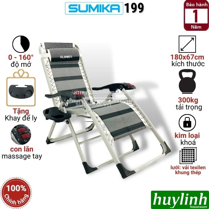 Giới thiệu Ghế xếp gấp thư giãn Sumika 199 - Có con lăn tay massage - Tặng khay để ly - Khoá Kim Loại, tải trọng 200kg