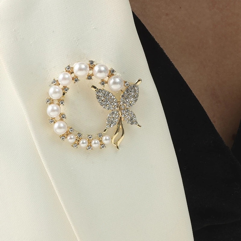 [Women Vintage Elegant Pearl Rhinestone Butterfly Circle Brooches ] [Clothes jacket Metal Brooch Pins] [Denim Shirt Lapel Hat Collar Jewelry]