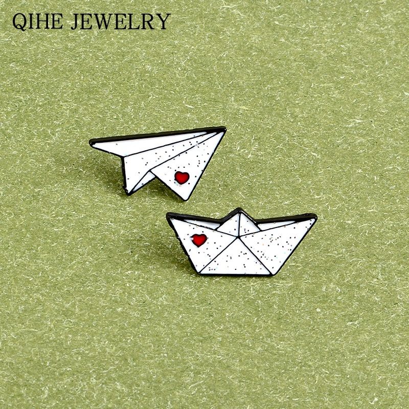 Giới thiệu Ghim Cài Áo Hình Chiếc Thuyền / Máy Bay / Máy Bay Giấy Tráng Men Độc Đáo Dễ Thương