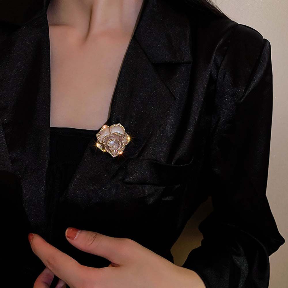 Phụ Kiện & Trang Sức Nữ > Phụ kiện thêm > Trâm & Pin cài áo > Ghim cài áo hình hoa trà đính ngọc trai nhân tạo phong cách Hàn Quốc thời trang sang trọng