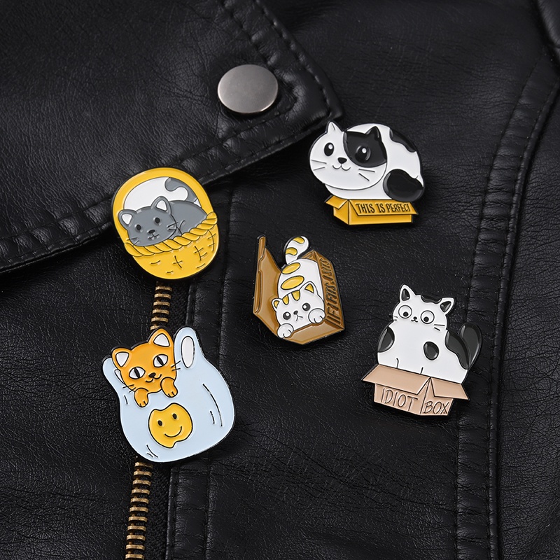 Phụ Kiện & Trang Sức Nữ > Phụ kiện thêm > Trâm & Pin cài áo > Ghim cài áo QIHE JEWELRY bằng kim loại lên men hình mèo trong hộp hoạt hình dễ thương trang trí balo nữ