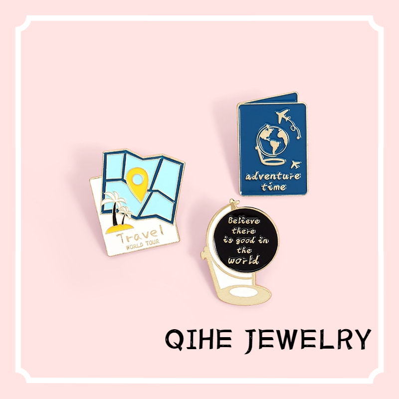 Giới thiệu Ghim cài áo QIHE JEWELRY gắn áo khoác denim/ túi du lịch hình bản đồ/ sổ hộ chiếu du lịch thám hiểm ngoài trời