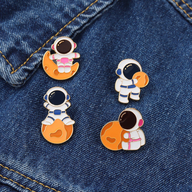 Giới thiệu Ghim cài áo QIHE JEWELRY họa tiết phi hành gia và mặt trăng bằng kim loại đáng yêu