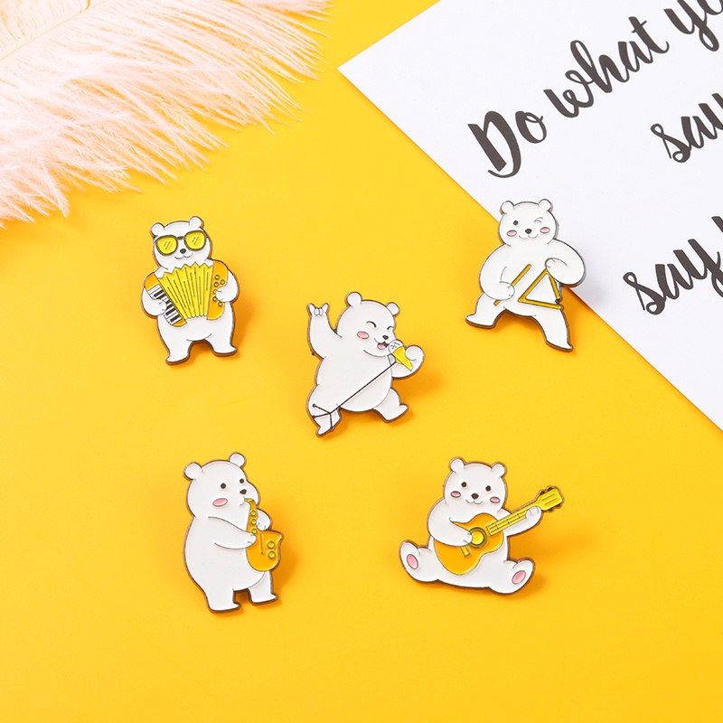 Giới thiệu Ghim cài áo Qihe Jewelry tráng men hoạt hình gấu trắng và nhạc cụ đáng yêu có thể trang trí balo