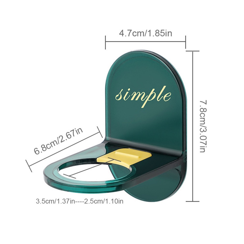 Thông tin chi tiết: Tên: giá đỡ gel tắm Chất liệu: PC Kích thước: Khoảng 78 * 47mm Màu sắc: nâu / xanh đậm Phạm vi áp dụng: Đường kính ngoài của miệng chai từ 2,5cm-3,5cm Số lượng: 1