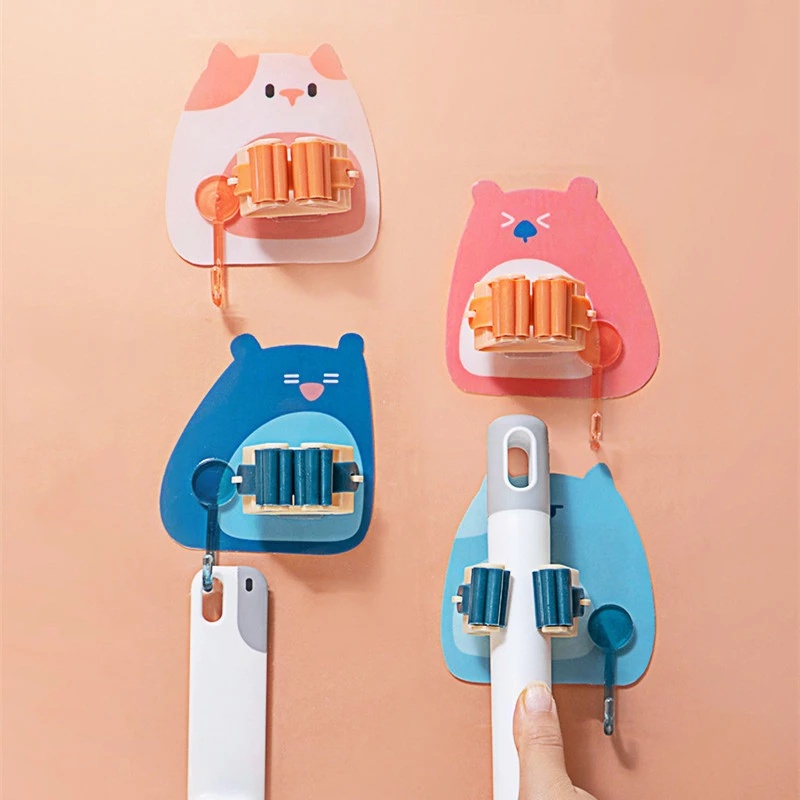 Giới thiệu [Mới] Giá Đỡ Chổi / Cây Lau Nhà Gắn Tường Họa Tiết Hoạt Hình Có Móc / Kẹp Sắp Xếp Gọn Gàng Phù