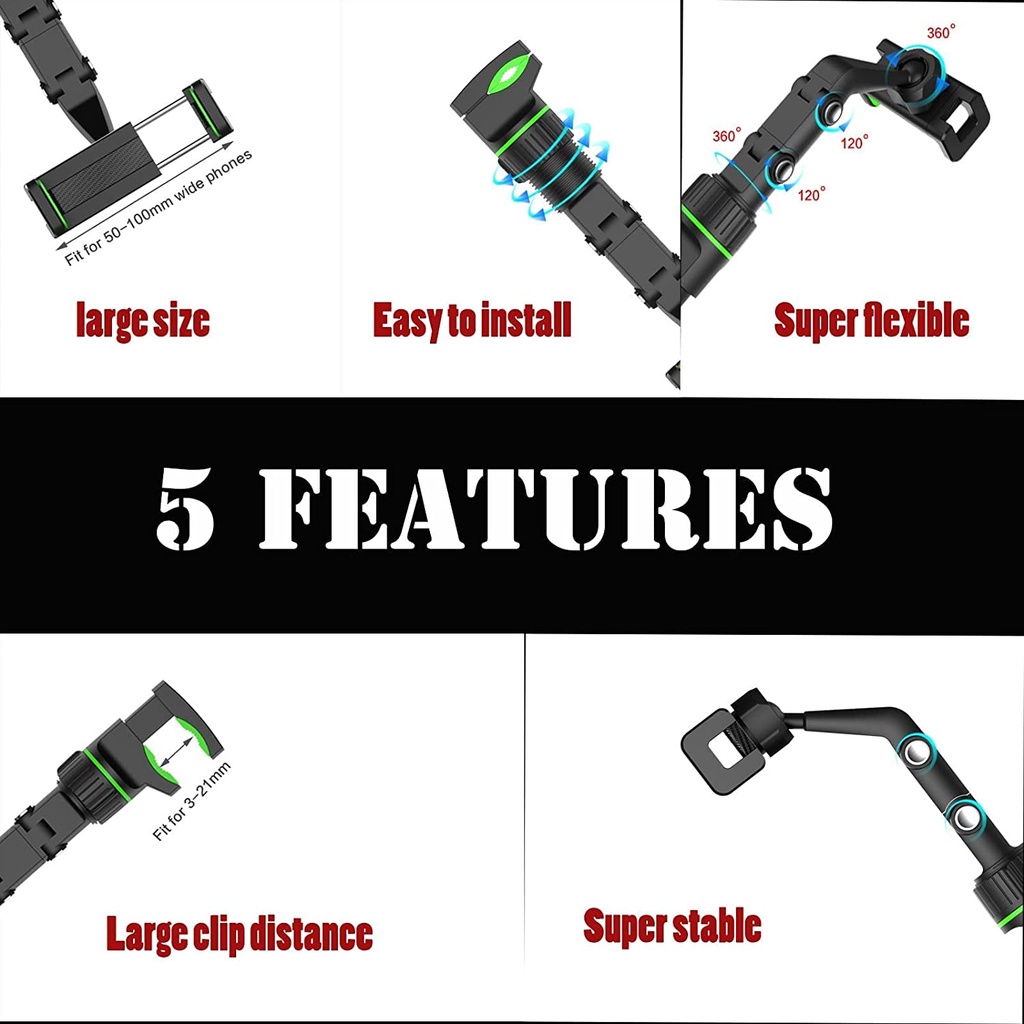 ❥Đặc điểm: - Truy CẬP BROAD: Giá đỡ điện thoại di động SPRISE có cực dài bằng nhôm 21cm gửi điện thoại của bạn gần bạn hơn nhiều. Nó có thể được gắn trên gương chiếu hậu ô tô hoặc tựa đầu phía sau ô tô một cách chắc chắn. Quan trọng nhất, bạn có thể uốn cong nó theo mọi hướng để tránh cản trở tầm nhìn.