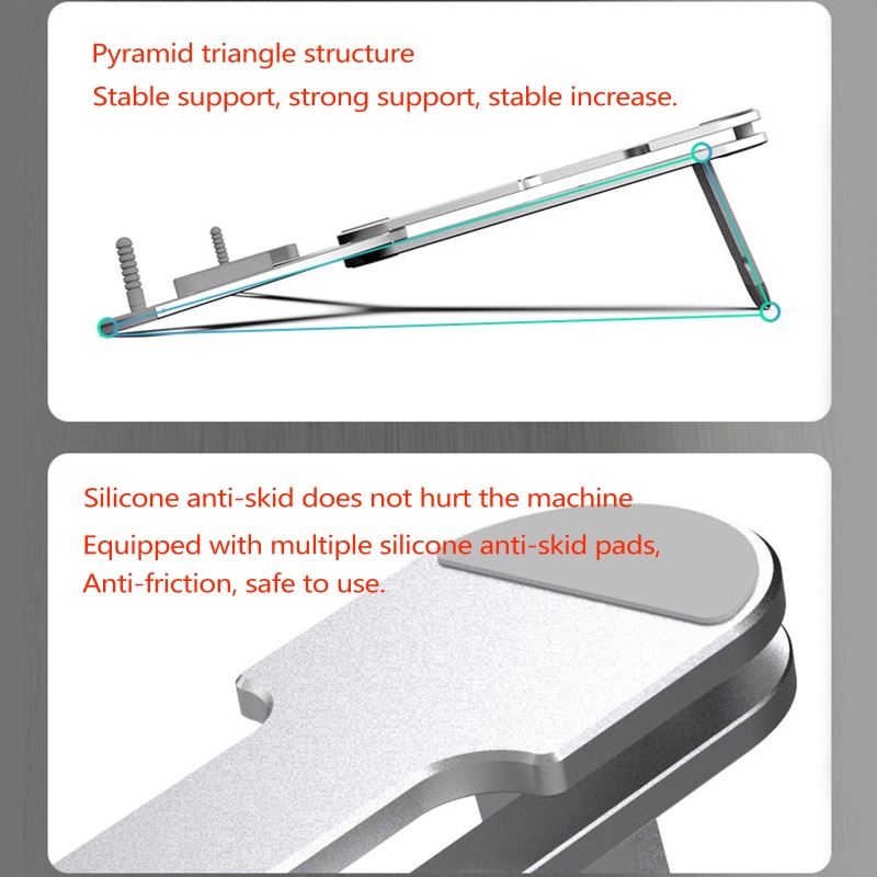 Chân đế máy tính xách tay công thái học Hợp kim nhôm Máy tính xách tay Giá đỡ máy tính xách tay Máy tính để bàn Giá đỡ làm mát máy tính xách tay cho máy tính bảng 11-15 '' Các tính năng: thương hiệu mới và chất lượng cao Khả năng tương thích phổ quát: Giá đỡ máy tính xách tay này dành cho bất kỳ máy tính xách tay nào dưới 15 inch, chẳng hạn như cho Mac-Book Air, Mac-Book Pro, ThinkPad, cho Dell, cho HP, Chromebook và các máy tính xách tay khác. Cứng cáp & Bảo vệ: Giá đỡ máy tính xách tay cho bàn được làm bằng hợp kim nhôm chất lượng cao, có độ ổn định tốt không rung lắc. Bề mặt trên của giá đỡ máy tính được thiết kế bằng đệm chống trượt silicone, nó là để bảo vệ thiết bị của bạn không bị trầy xước và trượt. Thiết kế tiện dụng - Giá đỡ nhỏ gọn mỏng giúp nâng máy tính xách tay của bạn lên 6 inch đến mức mắt hoàn hảo và ngăn bạn không bị gò bó trên màn hình, giúp giảm đau cổ và vai. Hơn nữa, cạnh của chân đế rất mịn giúp bảo vệ bạn không bị trầy xước. Giá đỡ máy tính xách tay có thể điều chỉnh này sử dụng nguyên lý cố định hình tam giác để làm cho chân đế ổn định hơn trên máy tính để bàn, không dễ lắc và phù hợp với nhiều tình huống sử dụng. Giá đỡ máy tính xách tay này là một mảnh, không cần tháo rời, và nó cũng rất thuận tiện để lắp đặt và đặt phụ kiện đứng. Một người bạn đồng hành hoàn hảo cho các chuyến du lịch, gia đình, chuyến công tác và văn phòng, cũng là một lựa chọn lý tưởng Lựa chọn cho giáng sinh và năm mới.