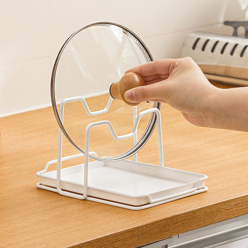 Description The Pot Lid & Spatula Shelf is made of excellent PS and iron material. Comprehensive description Spatula rack, using excellent PS and iron material. One rack for multiple uses, pot lid spatula collection storage to save space. Double U-shaped design, large and small lids can be placed. The bottom plate catches the water and does not dirty the countertop. The bottom plate can be removed, and draining water storage is easy to clean. Thick iron bracket, stable not to fall. Black and white two-color, high-value kitchenware organizer.