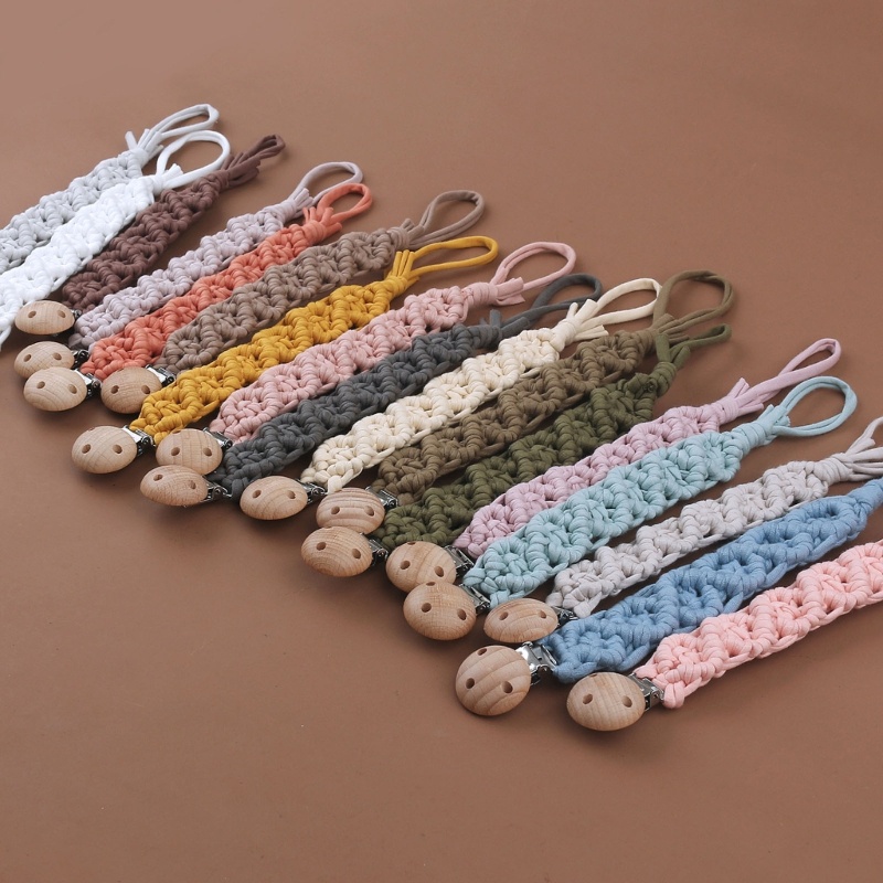 Giới thiệu Giá Đỡ Núm Vú Giả Bằng Gỗ Dệt Phối Dây Xích Kẹp Núm Vú Giả DIY Cho Bé Ngậm Mọc Răng