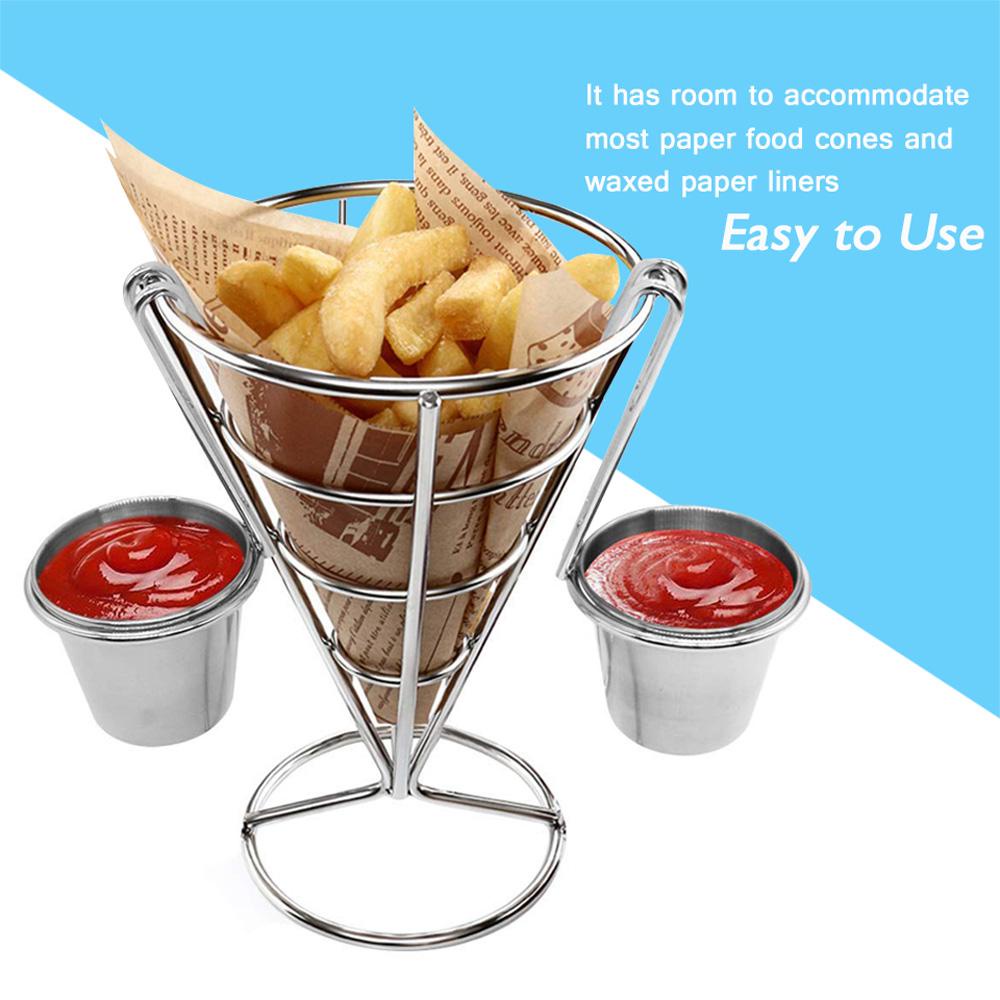 Tên : Giỏ chiên Chất liệu : Sắt tráng Màu bạc Kích thước : khoảng 10x14,5cm Nội dung gói — 1 x Đế chiên Chất liệu : khung dây kim loại. mạ. cứng không dễ biến dạng Giá đỡ khoai tây chiên sử dụng giấy sáp ( không bao gồm) để đựng thức ăn. cùng với cốc nhúng bằng thép không gỉ yêu thích của bạn Dễ dàng làm sạch : rửa tay bằng vải mềm. chất tẩy rửa nhẹ và lau khô khăn - không rửa bằng chất tẩy rửa mạnh hoặc mài mòn - không cho vào máy rửa bát ; giỏ hình nón không được khuyến khích sử dụng cho lò vi sóng Phục vụ các món ăn theo phong cách : một cách thú vị để phục vụ các món ăn có thể chia sẻ yêu thích của bạn , món khai vị hoặc thức ăn nhẹ Tuyệt vời cho nhiều loại thực phẩm , khoai tây chiên , cá và khoai tây chiên , vòng hoặc dây hành tây. viên falafel, tempura, calamari , khoai tây chiên , que mozzarella , cá que , v.v . Quầy khoai tây chiên kiểu Pháp Giá đựng đồ ăn nhẹ Giỏ trưng bày đồ ăn nhẹ có cốc đựng nước sốt Hình nón Món khai vị Khoai tây chiên Tự chọn rau củ quả