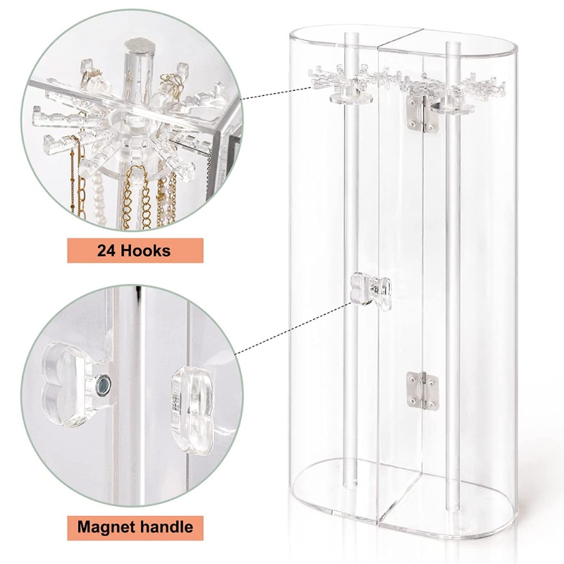 Giá đỡ vòng cổ tinh tế cho 70-80 vòng cổ Tổ chức trang sức công suất lớn Các tính năng: thương hiệu mới và chất lượng cao Được sử dụng rộng rãi, có thể giúp bạn cất giữ vòng cổ, vòng tay, bông tai, tiết kiệm không gian, có thể đặt trong nhà, ký túc xá. Một sự độc đáo và tuyệt vời thực sự cho tất cả các dịp, có thể mang lại ý nghĩa cho bạn bè đồng nghiệp hoặc người thân. Thân thiện với môi trường, được làm bằng vật liệu không độc hại, không gây hại cho con người, có nắp đậy, tay cầm và bản lề bằng thép không gỉ, dễ mở. Được làm bằng acrylic, bền và chắc chắn, không dễ gãy hoặc hư hỏng, không thấm nước và chống bụi, dễ làm sạch, thiết kế khóa để bảo vệ đồ trang sức bên trong. Bạn có thể đặt hầu hết các vòng cổ 70-80 bên trong, sức chứa lớn, phù hợp với hầu hết các nhu cầu của bạn, móc treo có thể xoay, thích hợp cho siêu thị, cửa hàng trang sức để trưng bày đồ trang sức.