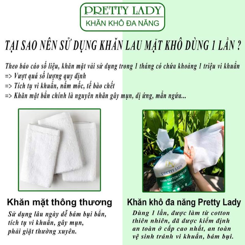 Giới thiệu (Giá sỉ) Khăn mặt khô đa năng Pretty Lady chính hãng giá rẻ