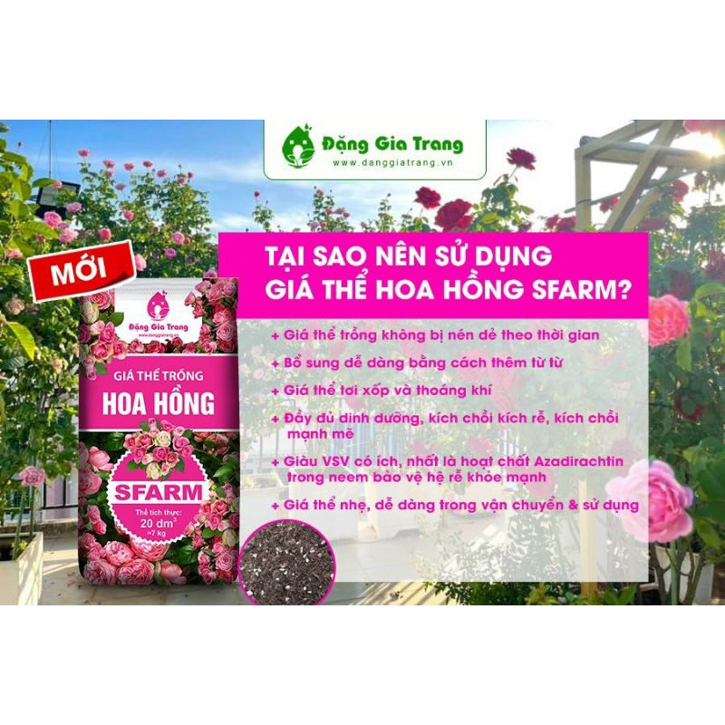 Giới thiệu Giá thể trồng Hoa Hồng đầy đủ khoáng chất Sfarm bao 20dm3 ( khoảng 7kg)