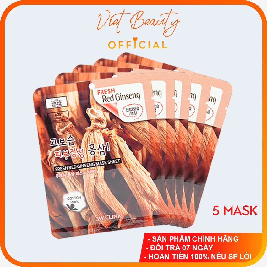 Sắc Đẹp > Chăm sóc da mặt > Mặt nạ > (❤️GIÁ TỐT NHẤT SHOPEE❤️) COMBO 05 Mặt nạ dưỡng da chiết xuất từ nhân sâm đỏ 3W CLINIC FRESH RED GINSENG MASK SHEET 23ml
