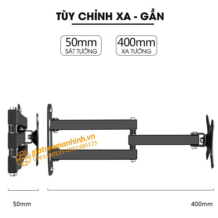 * Thông số kỹ thuật: + Hỗ trợ màn hình 14” – 27” + Trọng lượng màn hình hỗ trợ tối đa:10 kg + Tương thích với chuẩn VESA (75x75mm & 100x100mm). + Khoảng cách tường điều chỉnh: 35 - 370 mm + Chất liệu: thép, sơn tĩnh điện. + Màu sắc : Đen. + Trọng lượng : 1.3kg + Phạm vi điều chỉnh độ nghiêng màn hình: 15° + Độ nghiêng trái phải : 180° + Độ xoay màn hình dọc/ngang: KHÔNG Hỗ trợ hướng dẫn lắp liên hệ trực tiếp với shop qua khung chat shopee hoặc Zalo. ****************
