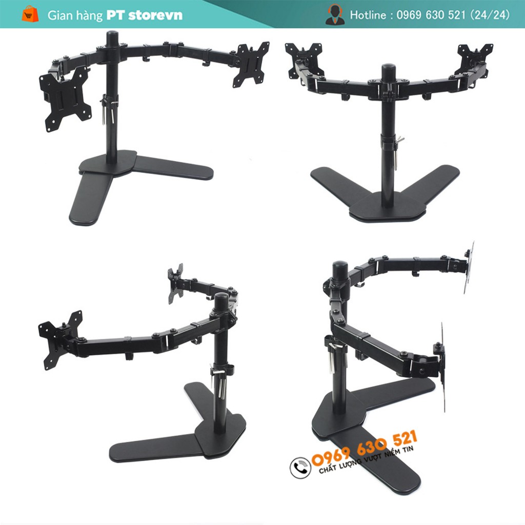 Tính năng Giá Treo Màn Hình , Giá đỡ màn hình Đôi ( Kép ) ✔ Chất liệu sắt ống to, chịu lực tốt, vỏ sơn tĩnh điện đảm bảo độ bền chống rỉ sét trong quá trình sử dụng ✔ Sản phẩm có đầy đủ vít , ốc để bắt vào lưng màn hình ✔ Chịu tải trọng lớn tới 9Kg / 1 tay phù hợp treo các loại màn hình từ 17 - 30 inch ✔ Giúp tiết kiệm không gian bàn, tạo góc nhìn phù hợp để bảo vệ mắt. ✔ Đa dạng kiểu xếp hai màn hình 4 kiểu xếp cơ động. ✔ Điều chỉnh độ cao thấp của màn hình - Đáp ứng mọi nhu cầu của Khách Hàng