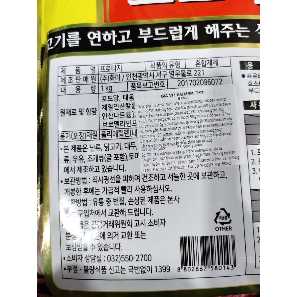 Sản phẩm Gia vị làm mềm thịt hwami protige 1kg - 프로티지 đang có giá bán là 305,000đ. Hiện tại, đang có hàng sẵn tại shop của chúng tôi trên sàn TMĐT Shopee. Quý khách có thể ĐẾN NƠI BÁN để vào shop chúng tôi đặt mua online, trả góp, ship hỏa tốc, thanh toán thẻ visa/master, thông tin xuất hóa đơn đỏ (VAT) hay cần có thêm nhiều thông tin về sản phẩm.