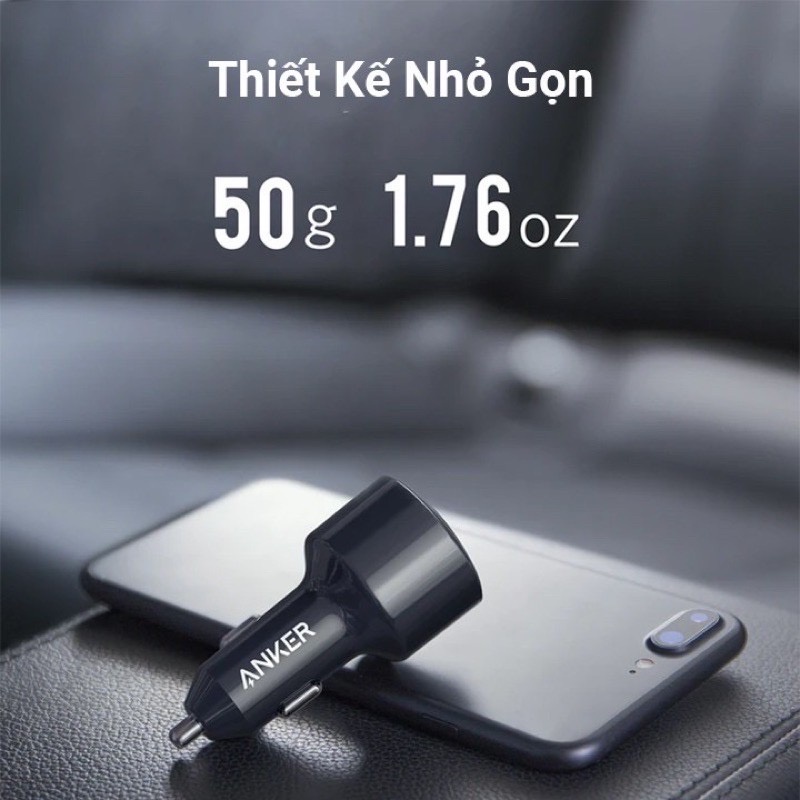 Giới thiệu [GIAO HỎA TỐC]Tẩu sạc ô tô Anker 2 Cổng 49.5W, PowerDrive II Power Delivery - A2229 PD 30W cho IP,tablet táo, QC cho and