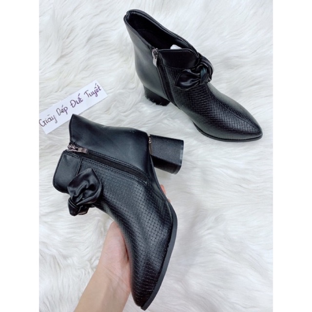 Giới thiệu giày boot nữ gót 5p nơ khoá hông, bốt cổ thấp
