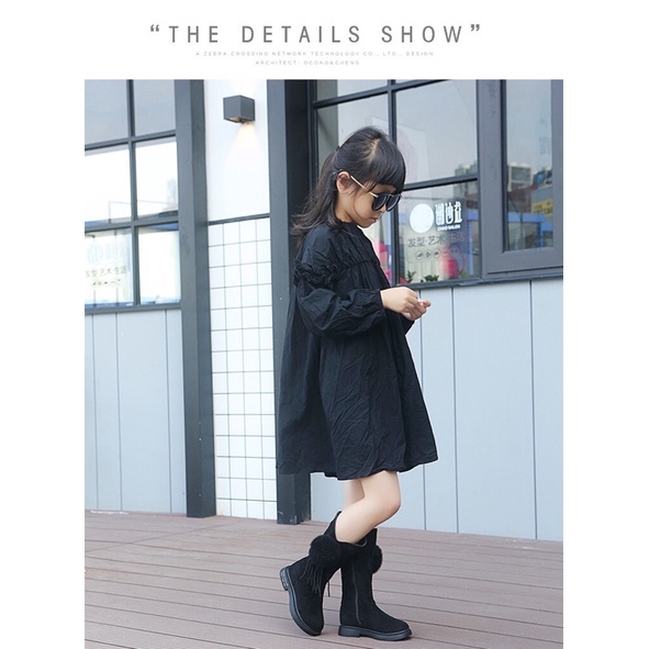 Giày bốt cổ cao thời trang đẹp cho bé gái Chất liệu mặt trên: da lộn Chất liệu đế: cao su tổng hợp Chiều cao khởi động: ống dài Dành cho: nữ, bé gái
