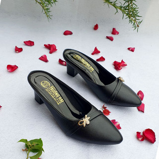 Giới thiệu Giày búp bê da bò đế bằng màu xám đính nơ xinh Trường Hải BB120X