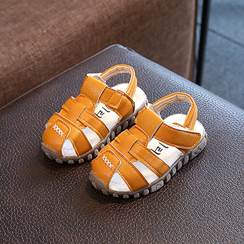 Description: 1 Material: synthetic leather, non-slip soft bottom comfort,easy to wear off, season: summer. 2.Design point: cool baby sandals, style style neutral, matching clothes are very versatile, color is more suitable for male babies. 3.Design points: cool baby sandals, style color warm,solid color decoration is very suitable for female baby easy to wear off,soles soft and flexible. 4.The style is beautiful and light,and can be worn in spring and summer. 5.Soft rubber out sole with grip-dots for new walkers,comfortable lining and foot bed for all-day comfort.