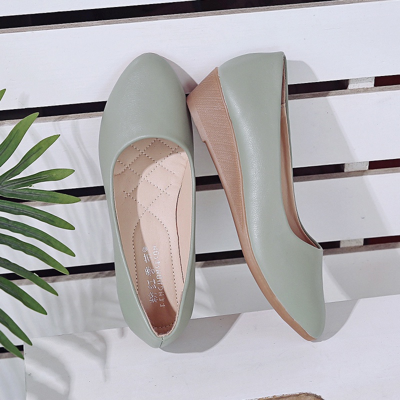 Cách mang: Xỏ vào bàn chân Kiểu mũi giày: Mũi tròn Kiểu gót: Gót nêm Chất liệu bên trong: PU Độ sâu miệng giày: Miệng nông Chất liệu bề mặt: PU Chi tiết phong cách: Miệng nông Chiều cao gót: 3.5cm