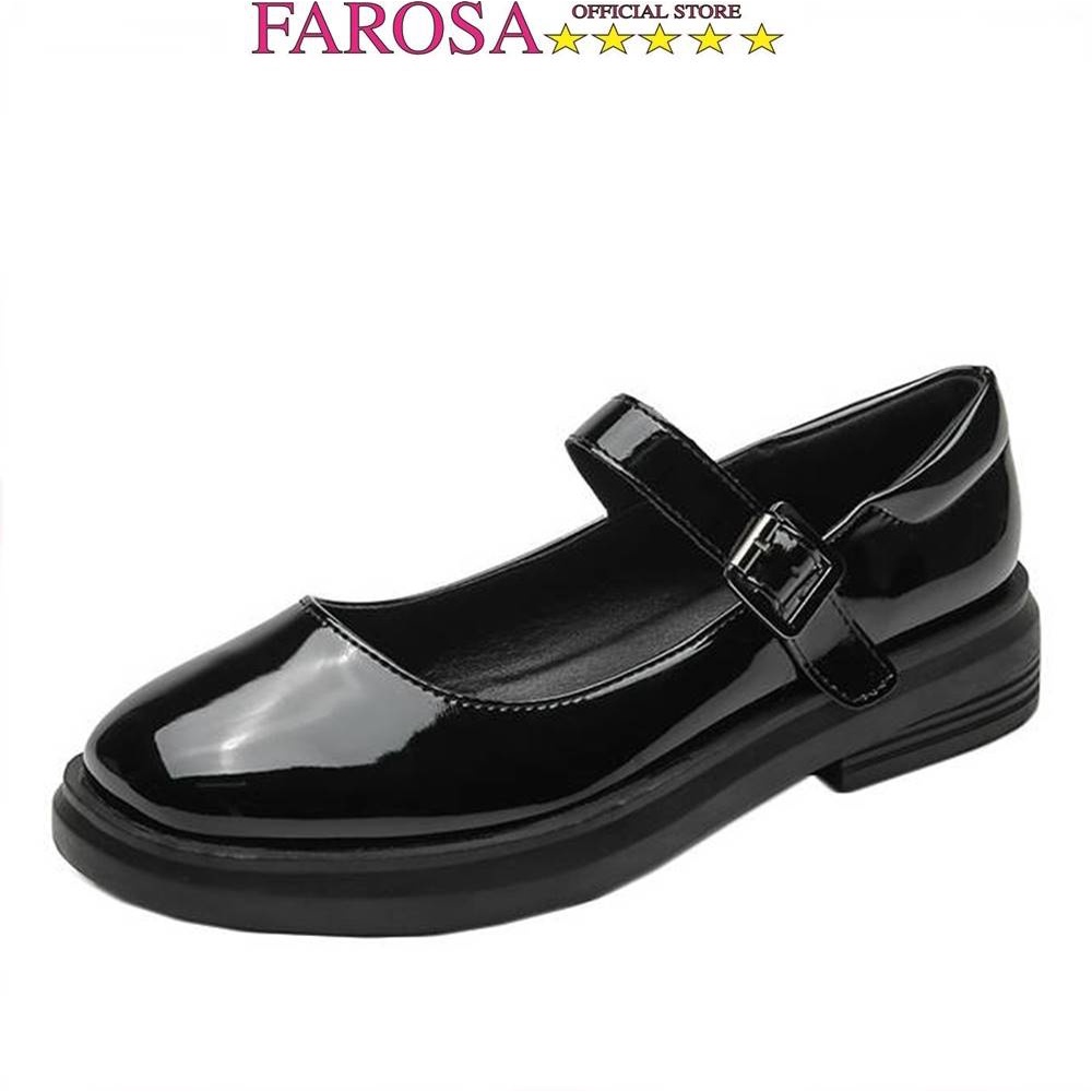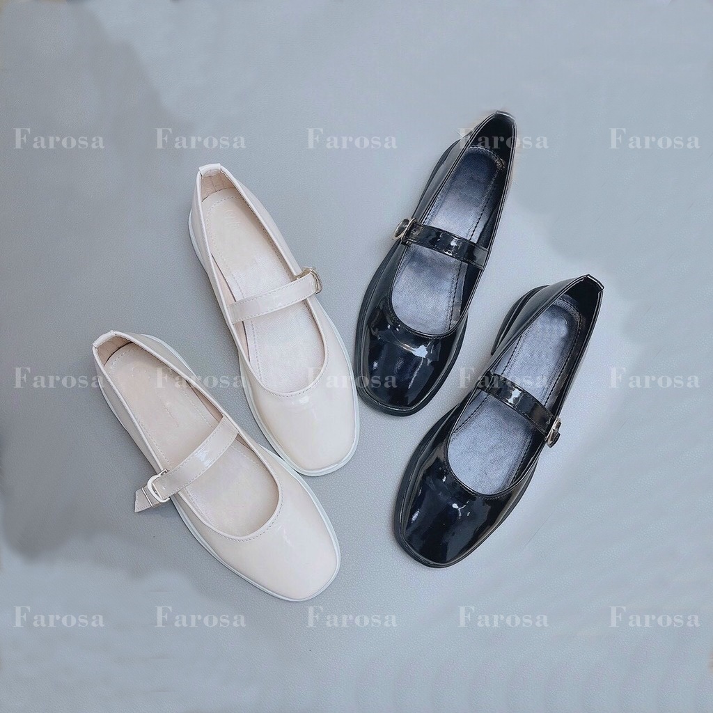 Giới thiệu Giày búp bê mũi tròn mix quai ngang FAROSA - M26 khoá cài da bóng đế 2cm cực xinh