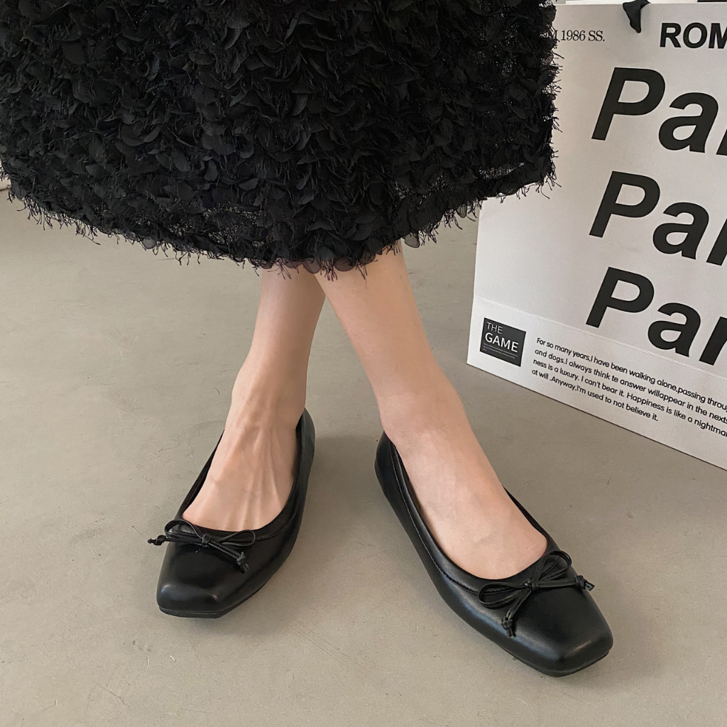 Giới thiệu Giày Búp Bê Mũi Vuông Đế Mềm Đính Nơ Màu Bạc Thời Trang Cho Nữ