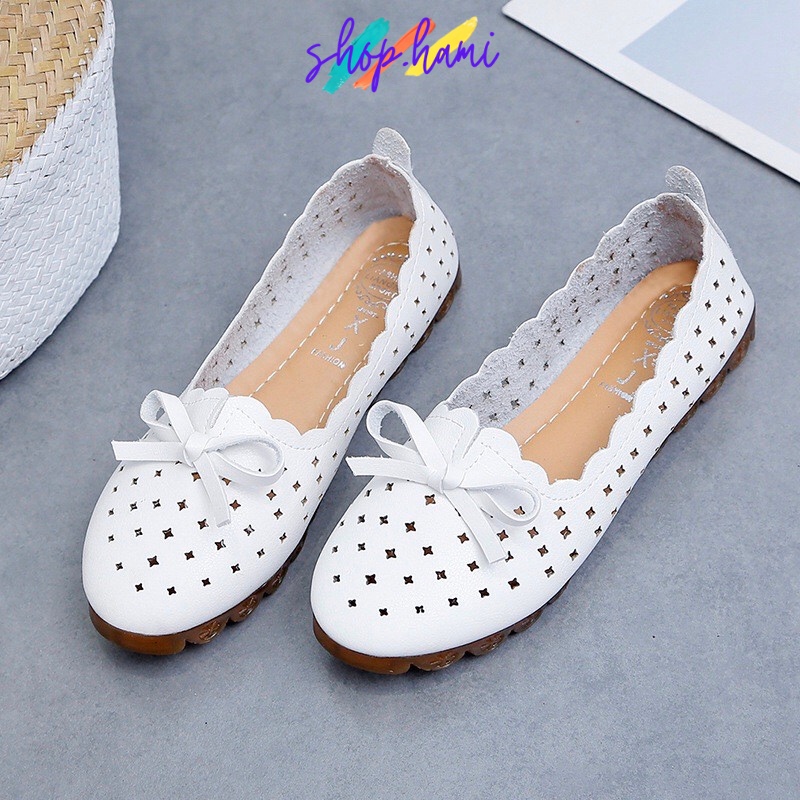 Giày Búp Bê Nữ Đế Bằng Cức Thoáng Mát Chống Trơn Trượt 2 Màu : Trắng, Nâu Đủ Size 35-40 SHOP HAMI G02