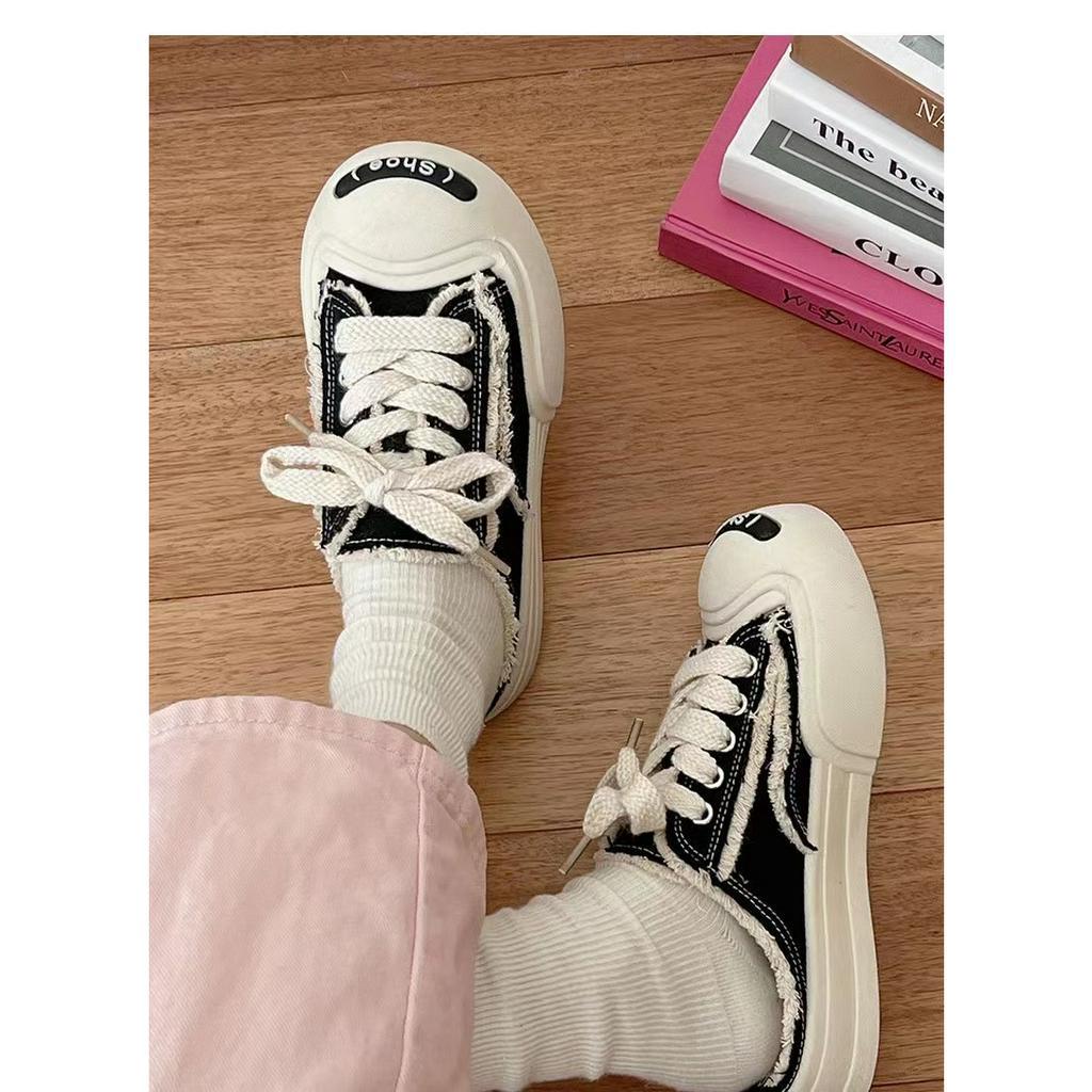 Giới thiệu Giày Canvas Hở Gót Đế Đệm Khí Mẫu Mới 2023 Phong Cách Mới Mùa Hè Màu Trắng / Đen Dành Cho Học Sinh