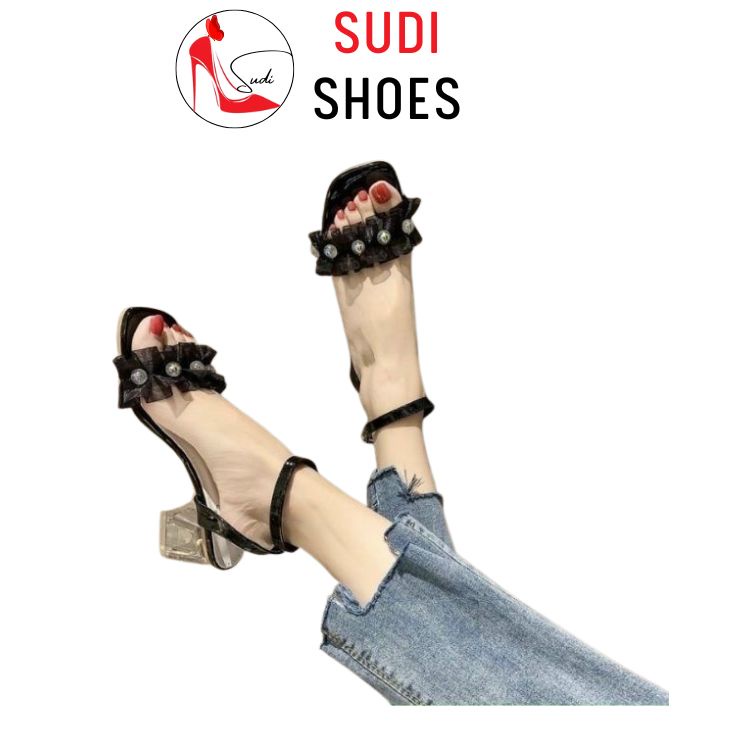 Giới thiệu Giày cao 5p gót trong suốt SUDI SHOES Q165-BAA đôi sandal có quai ngọc với 2 màu đen trắng dễ phối đồ