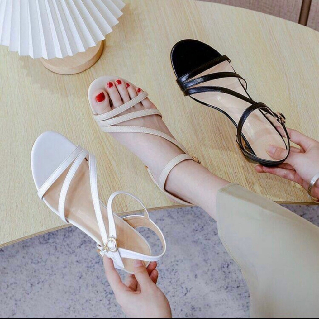Giới thiệu Giày cao gót 5cm 7cm quai 3 dây mảnh xéo khóa hạt (có ảnh thật)