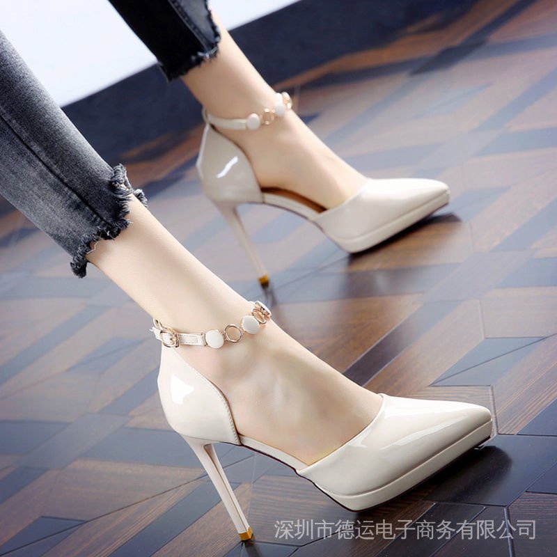 Giới thiệu Giày Cao Gót Da Bóng Mũi Nhọn Phối Khóa Kim Loại Phong Cách Âu Mỹ Thời Trang Cao Cấp Cho Nữ