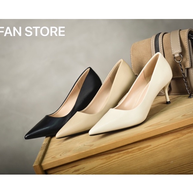 Giới thiệu Giày nữ mũi nhọn [da thật] cao gót đế nhọn 6 9 phân, da mềm mại big size màu đen be trắng FFAN STORE