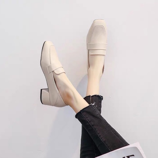 Giày cao gót 5 phân bản ngang thanh lịch Phong cách thanh lịch, nhã nhặn cho chị e. Hai màu đen kem Size 35,36,37,38,39 Dễ kết hợp quần áo