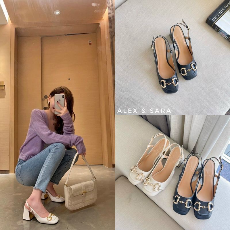Giới thiệu Giày cao gót nữ mũi vuông gắn khoá thời trang gót trụ cao 7.5cm