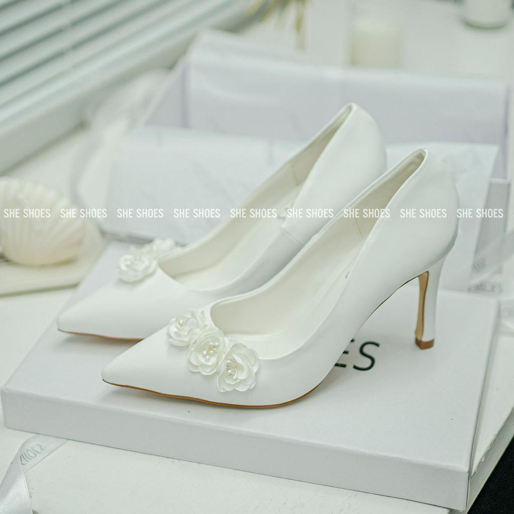 Giới thiệu Giày Cưới da PU gót nhọn đính viền 3 nhụy chéo VIE (NEW ARRIVAL) - GC07052