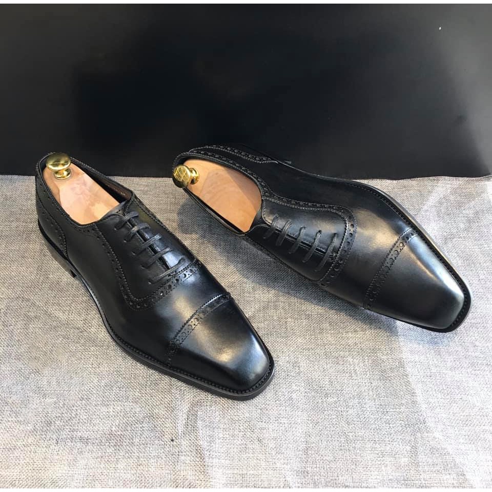 Giới thiệu Giày da nam oxford cao cấp đế gỗ phíp da bò thật bh 1 năm - Mã T150