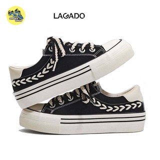 Giày nữ, giày thể thao nữ thêu nổi dây tết đế cao 3cm màu đen, màu kem size 36-40