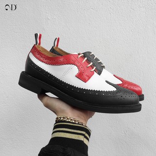 Giày da trắng phối màu caro, phom dáng đẹp, đế giày tăng chiều cao - 25.December mã GTK8268